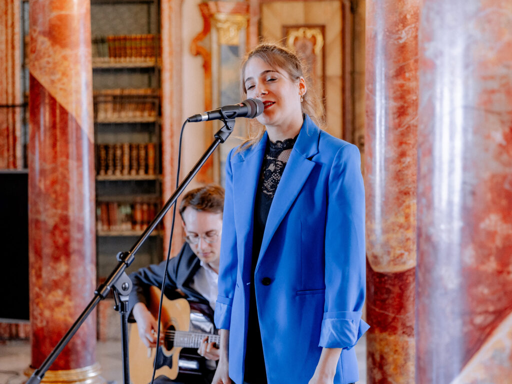 Auch beim Sektempfang oder Dinner sorge ich mit stimmungsvoller Livemusik für die perfekte Atmosphäre – elegant, persönlich und ganz auf euren Geschmack abgestimmt. Als Solosängerin oder im Duo: Ihr habt die Wahl.